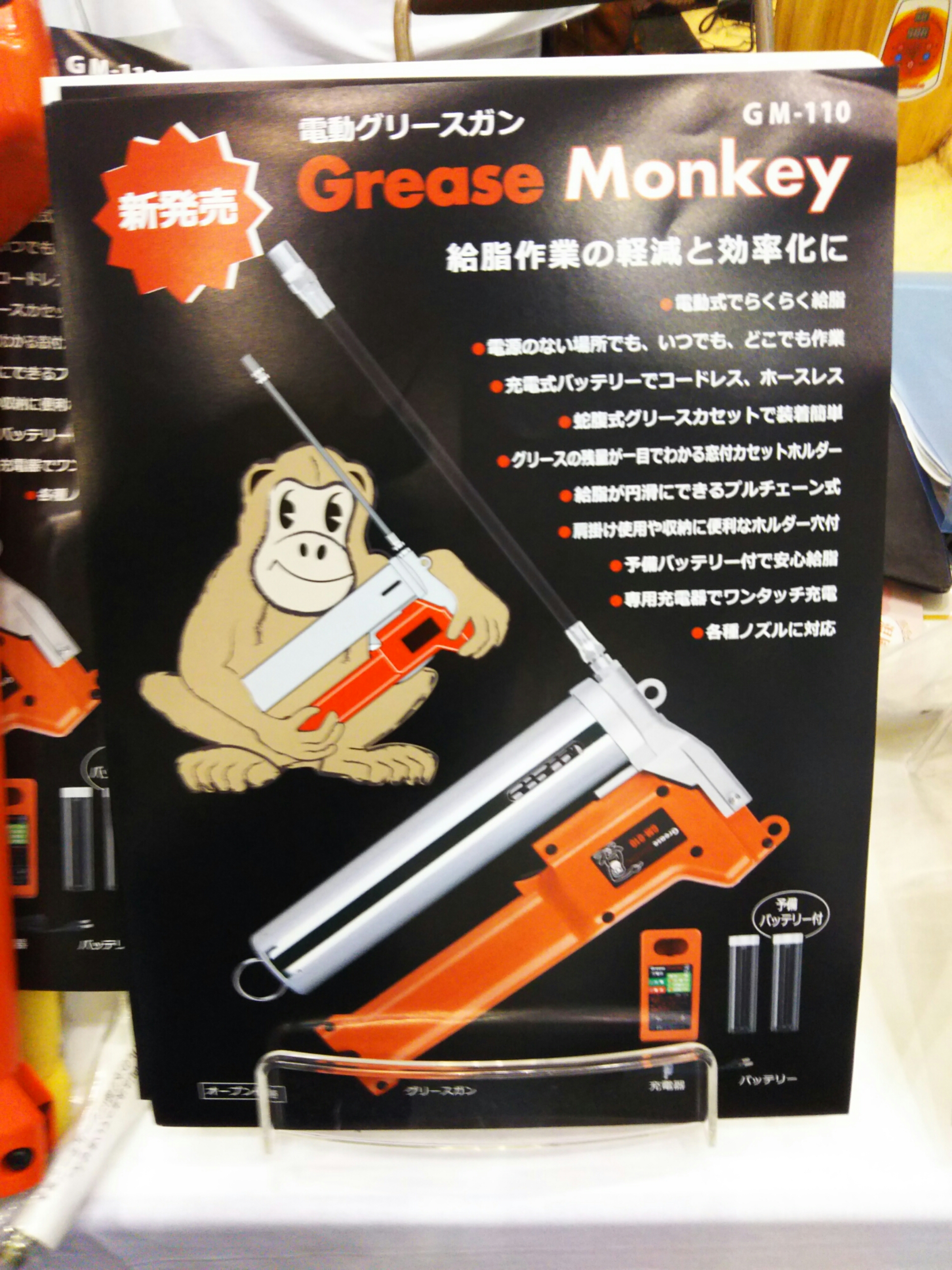 写真はNSTさんがメーカーとして販売されてるグリースモンキーです。リフトや重機の給脂作業が電動で超ラクチンになるアイテムです。思い当たる方はぜひお声がけください。