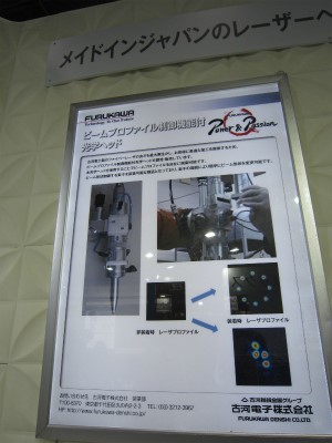 続いてレーザー発振器をメイドインジャパンで開発されている古河電工(古河電気工業株式会社)のブースを訪問。現在古河電工製では、シングルモードのファイバーレーザーが300W/500W、マルチモードでは最大6kWまでの国産レーザー発振器を実現されたとのことです。国産勢の今後に期待したいと思います。さらに画期的なビームプロファイル制御機能付きの光学ヘッドが展示されていました。こちらも後日詳しく解説します。