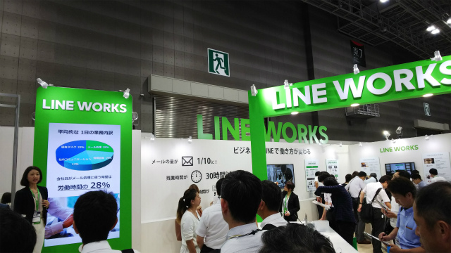 LINEはグループウェア「LINE WORKS」を紹介。会社側がオフィシャルにLINEを使おう! メールチェックや会議の時間を大幅削減! を売りにしていました。確かにいいかも。