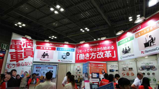 こちらのブースはテレワーク押し。テレワークを導入するためのテレビ会議システム、業務システム等を紹介していました。テレワークのソリューションは本当に多かった。
