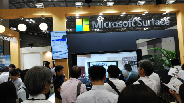 Microsoftブースでは、発売されたばかりのSurfaceが出ていて人だかりができていました。
