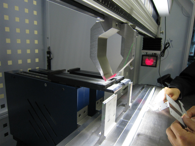 左がオペレータの作品、右が新開の作品。ブレーキによる曲げ加工には初挑戦ですが、プロと遜色のない作品(?)に仕上がりました。さすが「未経験の女性でも曲げられる」というだけのことはあります。人手不足、女性活用が叫ばれる昨今、この設備なら加工現場での女性活用という道もありそうですね。