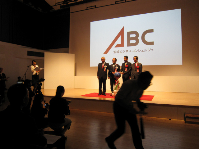 こちらは安城市長、安城市議会議長、安城商工会議所会頭と、我らがABCの生熊センター長による開所セレモニーの様子です。