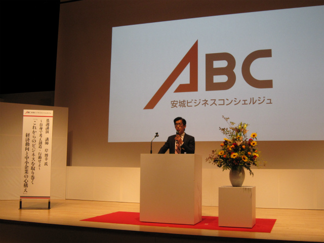 スタッフ紹介に続き、経済評論家の岸博幸氏の基調講演「これからのビジネスを取り巻く経済動向と中小企業の心構え」を聴講しました。