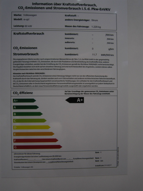 市販されている展示車両の前には、CO2排出量を示すこのような表示があちこちにありました。翌日訪れたショッピングセンターの家電製品にも同じ表記があり、車から最終消費家電までCO2排出量の目安になるものが表記してあるのが、温暖化対策に積極的なEUなんだなと改めて感じさせられました。日本にも一部の商品にトップランナー表記があるのですが、統一感がなくてわかりにくいのが残念です。