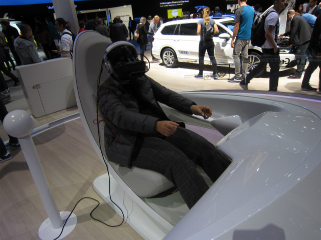 自動運転のシミュレータ。オフィス・キートス代表が自ら体験しています。
