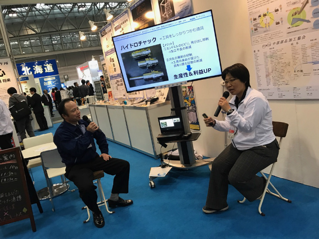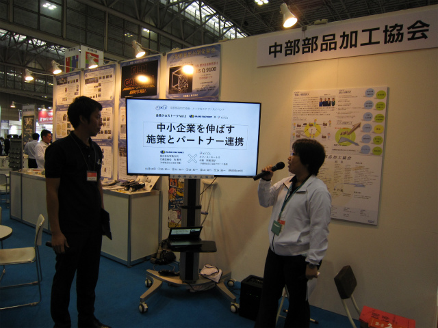 今年は「中部部品加工協会」メンバーとしてパネル出展しまして、さらにブース内で開催したトークイベントにも登壇させていただきました。
