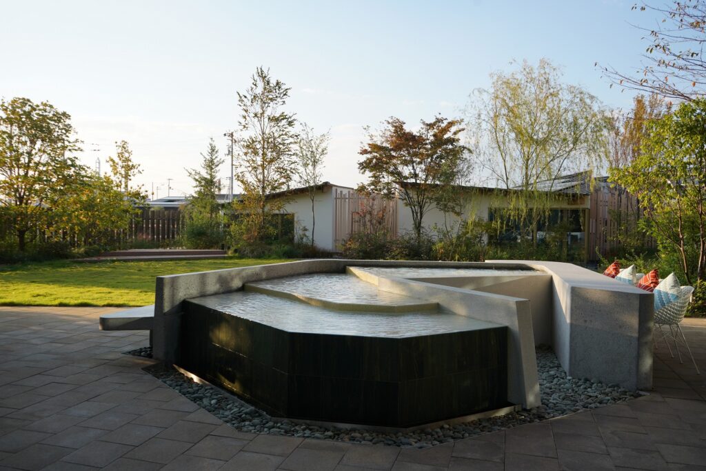 ホテルがある愛媛県西条市は、北は瀬戸内海に面し、南には石鎚山がそびえる風光明媚な場所。街中から「うちぬき」と呼ばれる湧き水があふれる水の町でもあります。ここに2023年春、日本初のゼロエネルギーホテル「いとまちホテルゼロ」が開業しました。