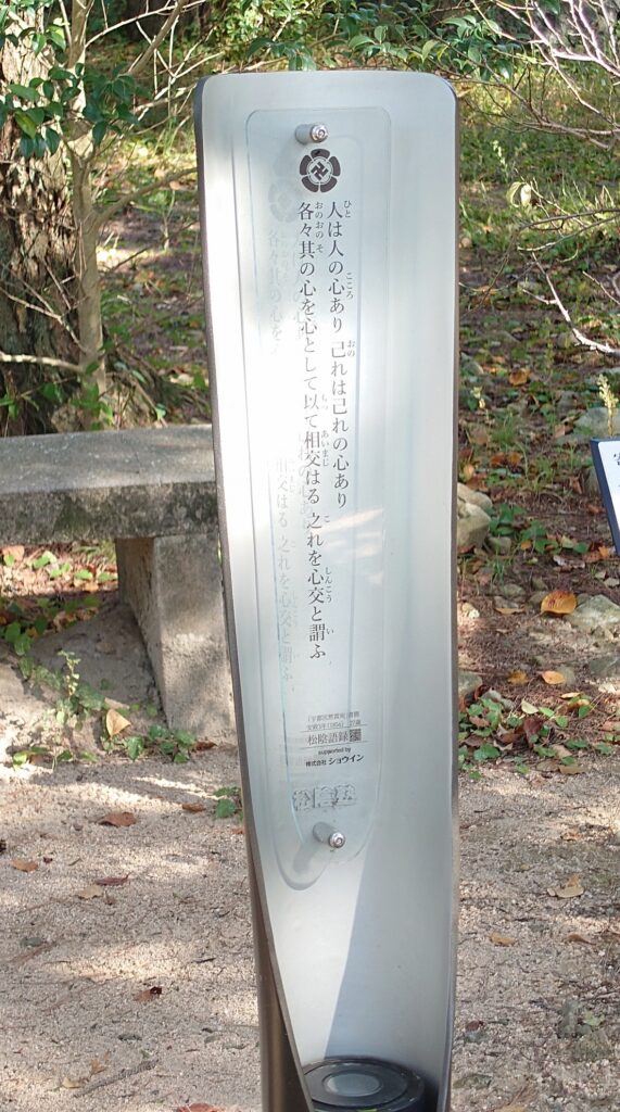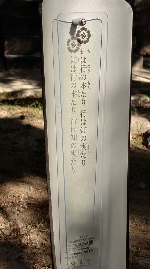 松陰神社の境内には「学びの道」という参道があり、吉田松陰の言葉が刻まれた25基の句碑が並んでいましたので、メモ代わりに写真を撮ってきました。そのうちの4つをここで紹介したいと思います。