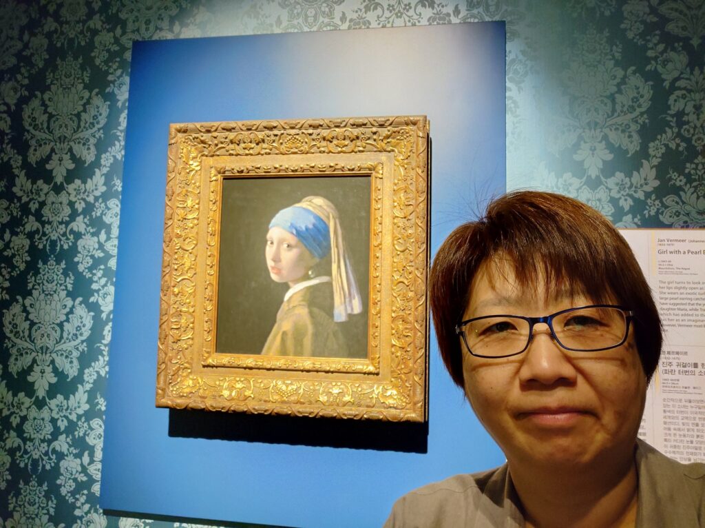 真珠の耳飾りの少女(フェルメール)とのツーショット撮影に成功