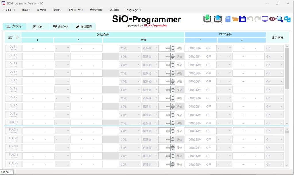 SiOコントローラを設定するソフト「SiO Programmer」と、IoT設定用のソフト「IoT Programmer」の2つをインストールする必要があります。どちらのソフトも、付属のCDまたはSUSのサイトから無料ダウンロードになっています。