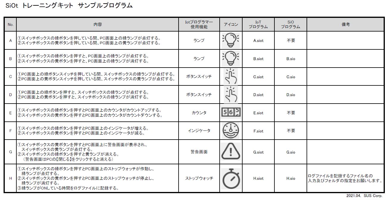 今回購入したSiOtトレーニングキットには、8つのサンプルプログラムが付属していました。これを上から順番に試してみました。