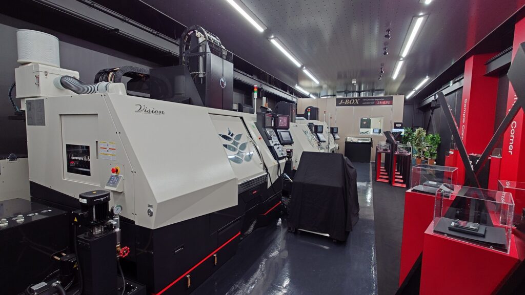 ショールーム「MA-Labo」の様子。奥にある「J-Box」は恒温室の中にある恒温室で超精密部品を加工できる部屋だそうです。